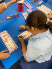 At our school, all children from Reception to Year 6 take part in daily handwriting sessions using the Kinetic Letters programme. Children begin by securing correct formation of individual letters, then practise letter families and patterns, before progressing to pairs of letters, whole words, and eventually consistent joining at an appropriate stage. This structured progression helps children build automaticity, confidence and pride in presentation. By Year 6, pupils are still encouraged to apply the Kinetic Letters approach; however, we also recognise that many children develop a personal handwriting style. At this stage, pupils may use their own style as long as it remains neat, legible and joined, enabling them to write fluently and present their work clearly across the curriculum.